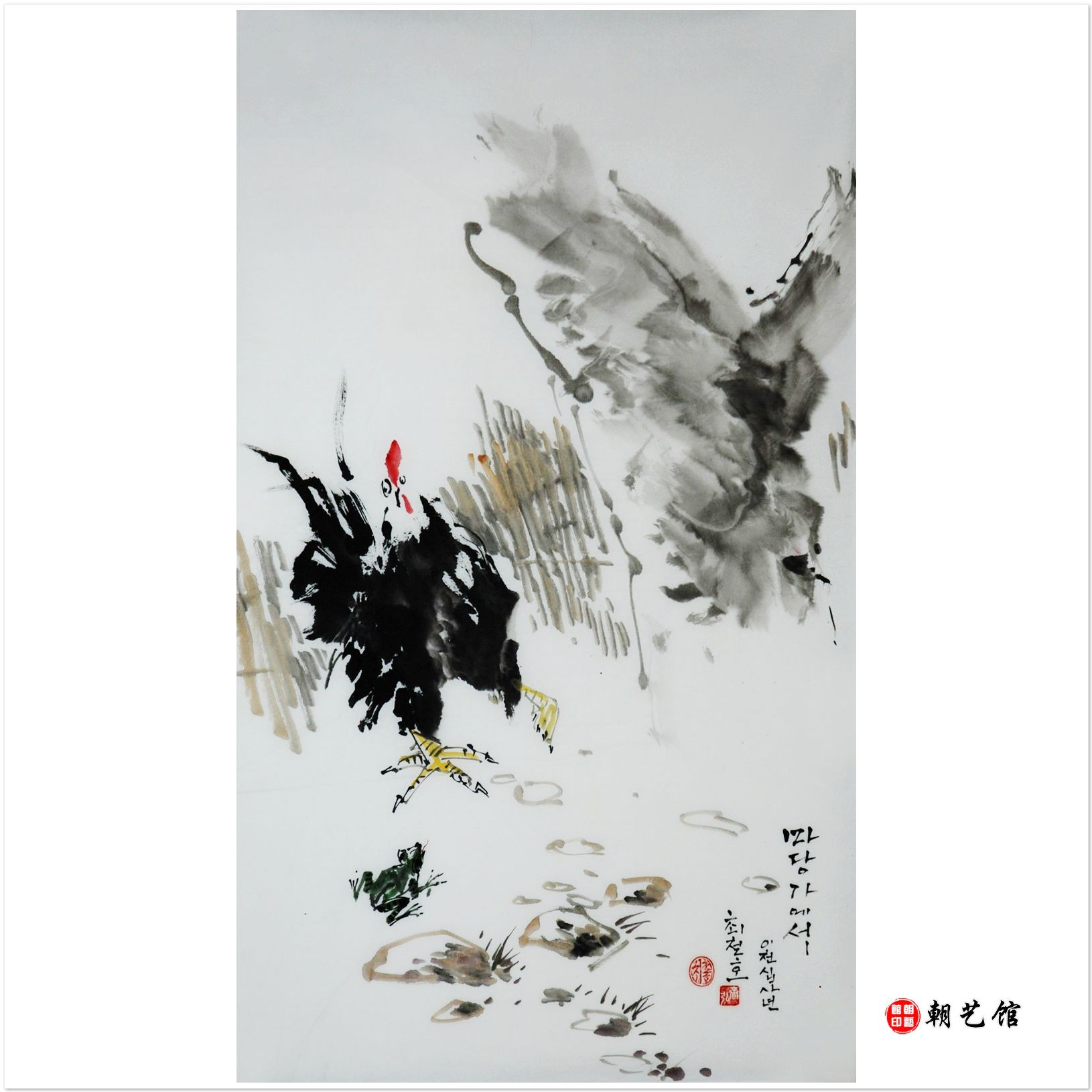 首页 > 朝鲜国画 > 花鸟国画 > 崔哲浩《庭院里》朝鲜国画-jdzx