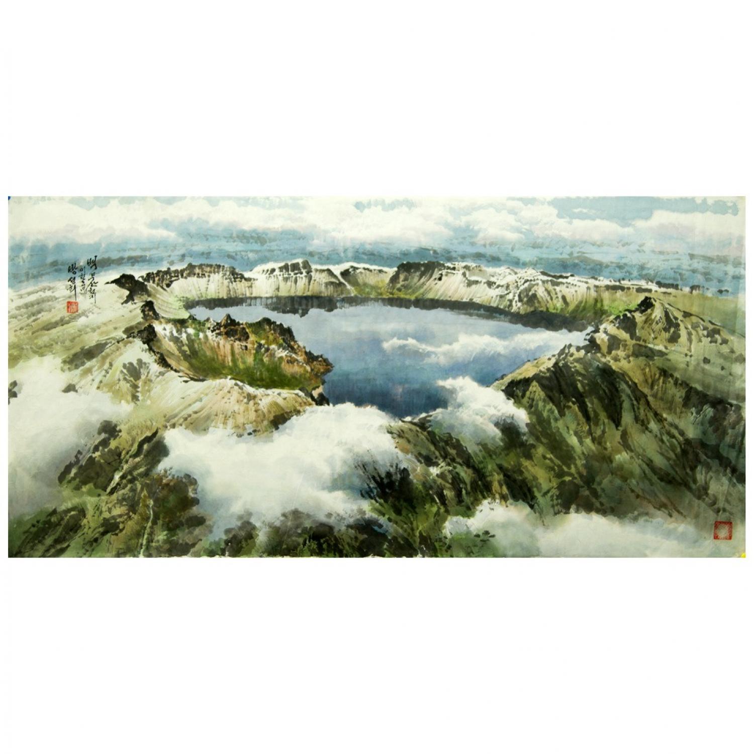 首页 > 朝鲜国画 > 风景国画 > 方成姬《天池》朝鲜国画-L927