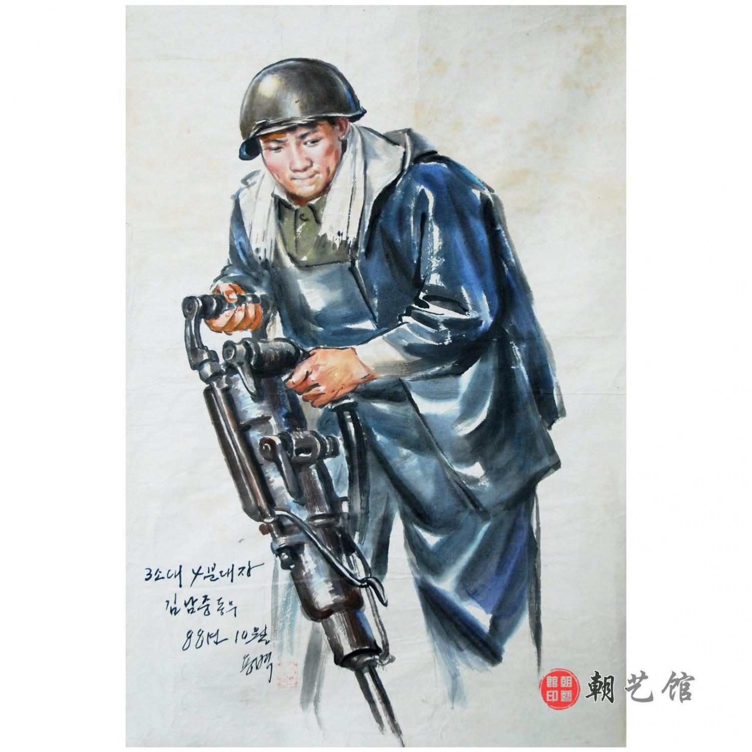 张永壁《3小队队长金男中同志》朝鲜国画