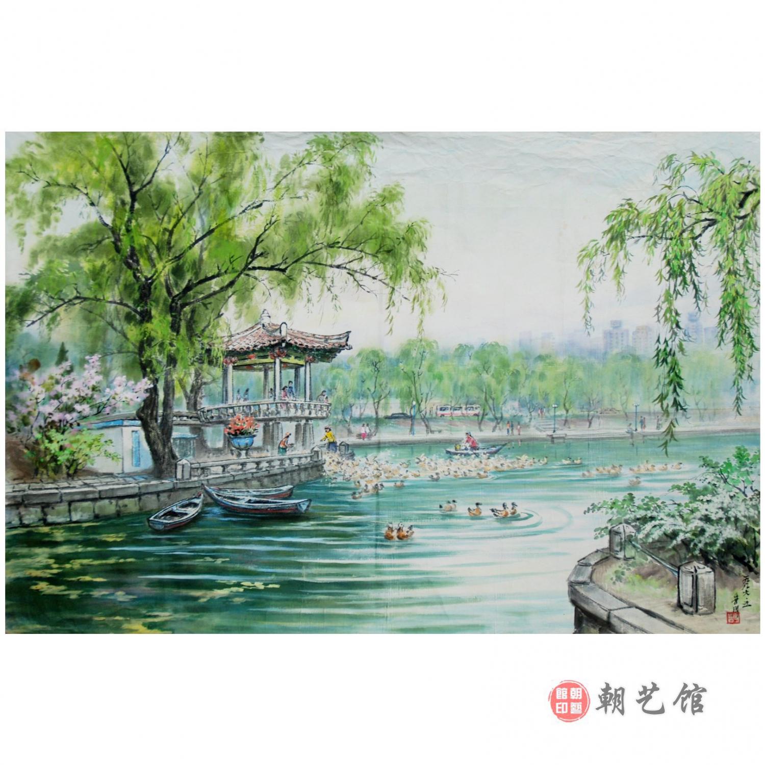 张永壁《公园一角》朝鲜国画
