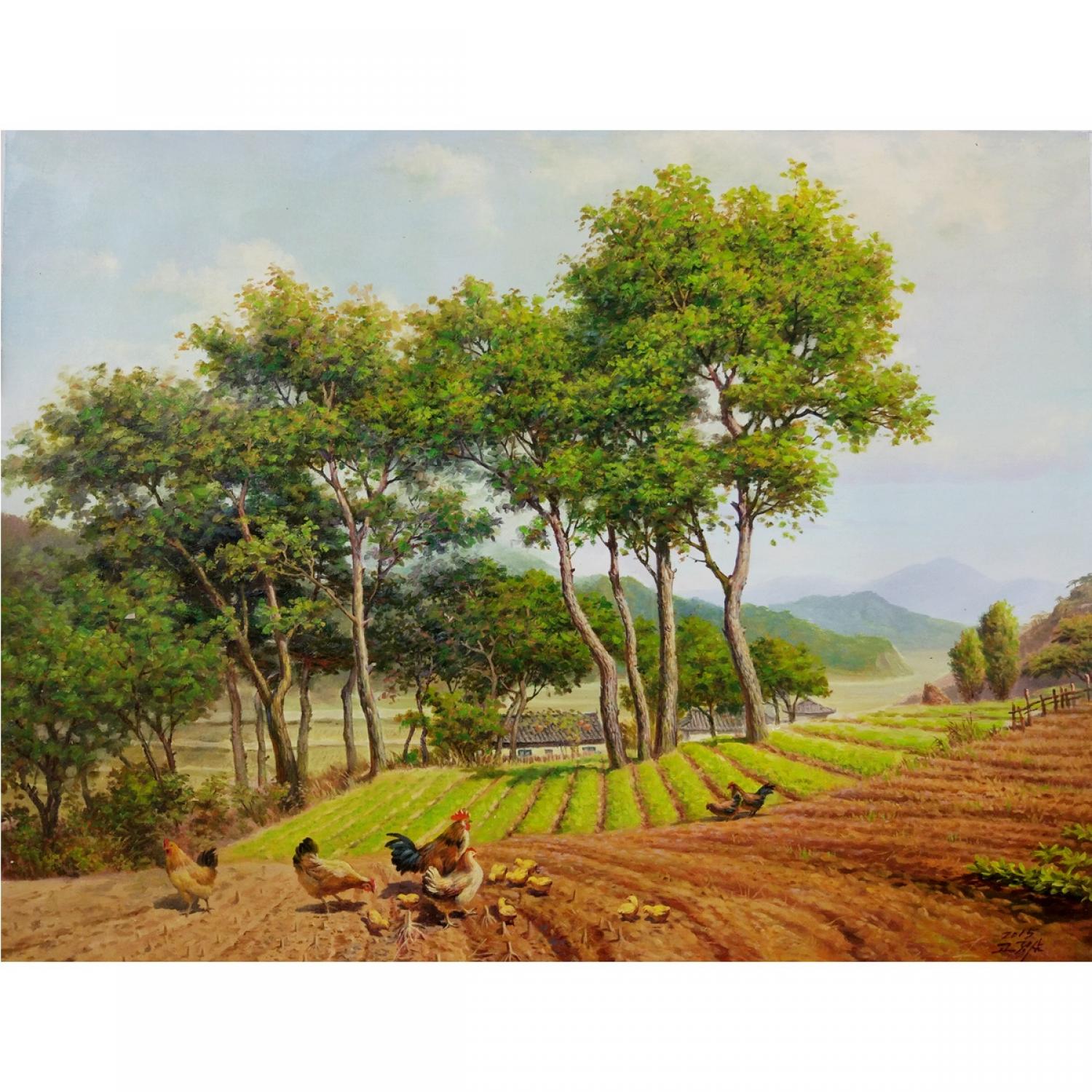 高正三《田野里》朝鲜油画--xgf