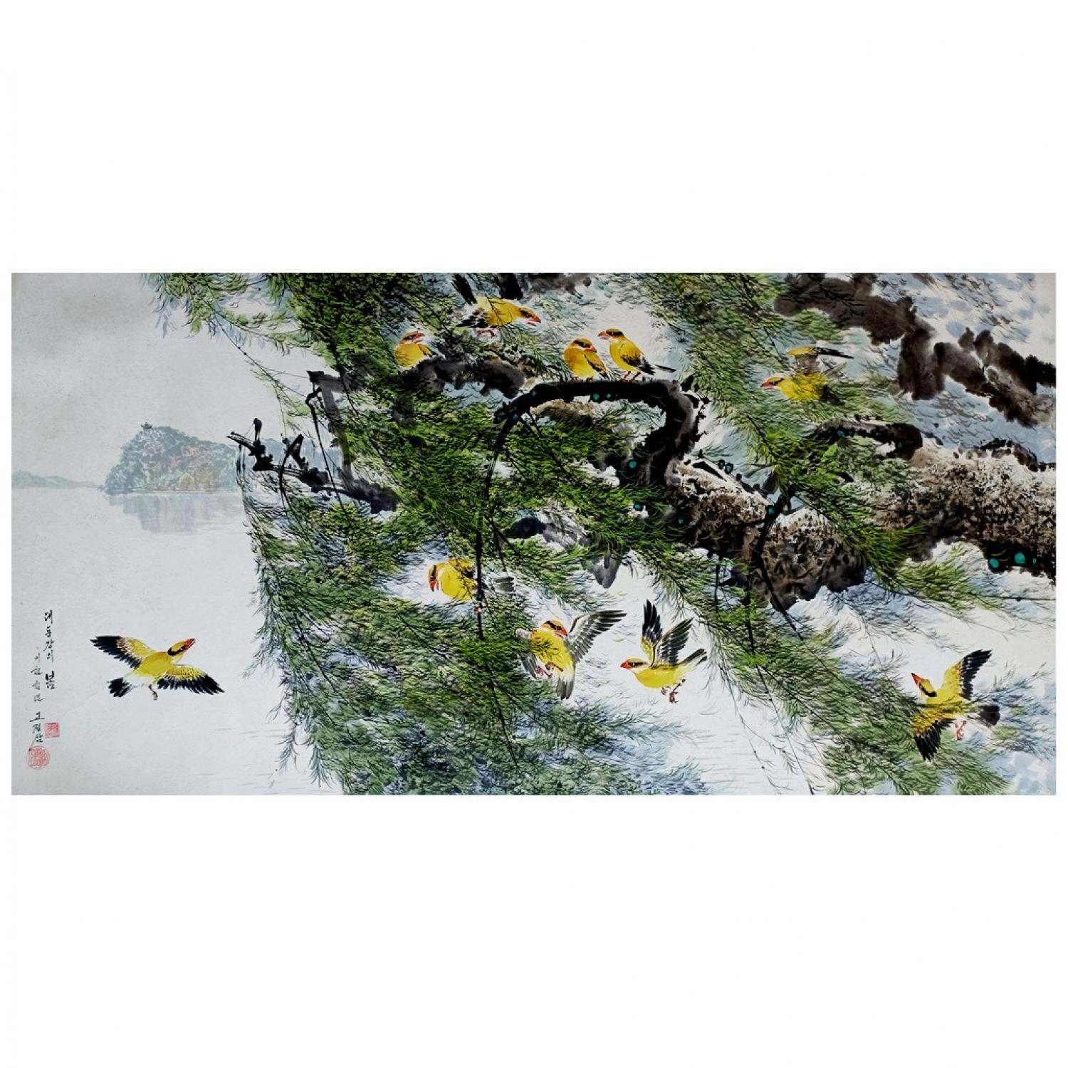 高正三《大同江的春色》朝鲜国画