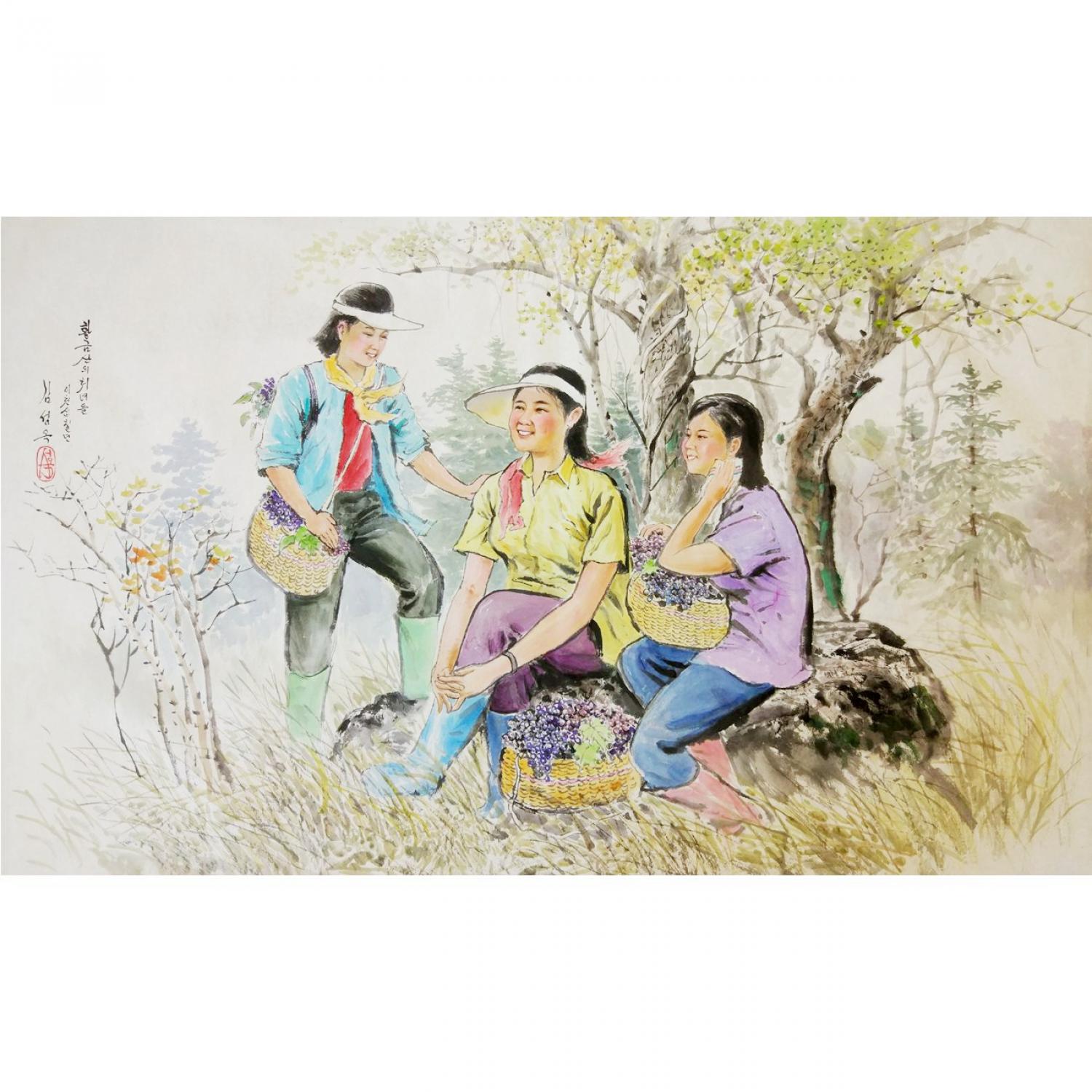 金成玉《黄金山的姑娘们》朝鲜国画--ph