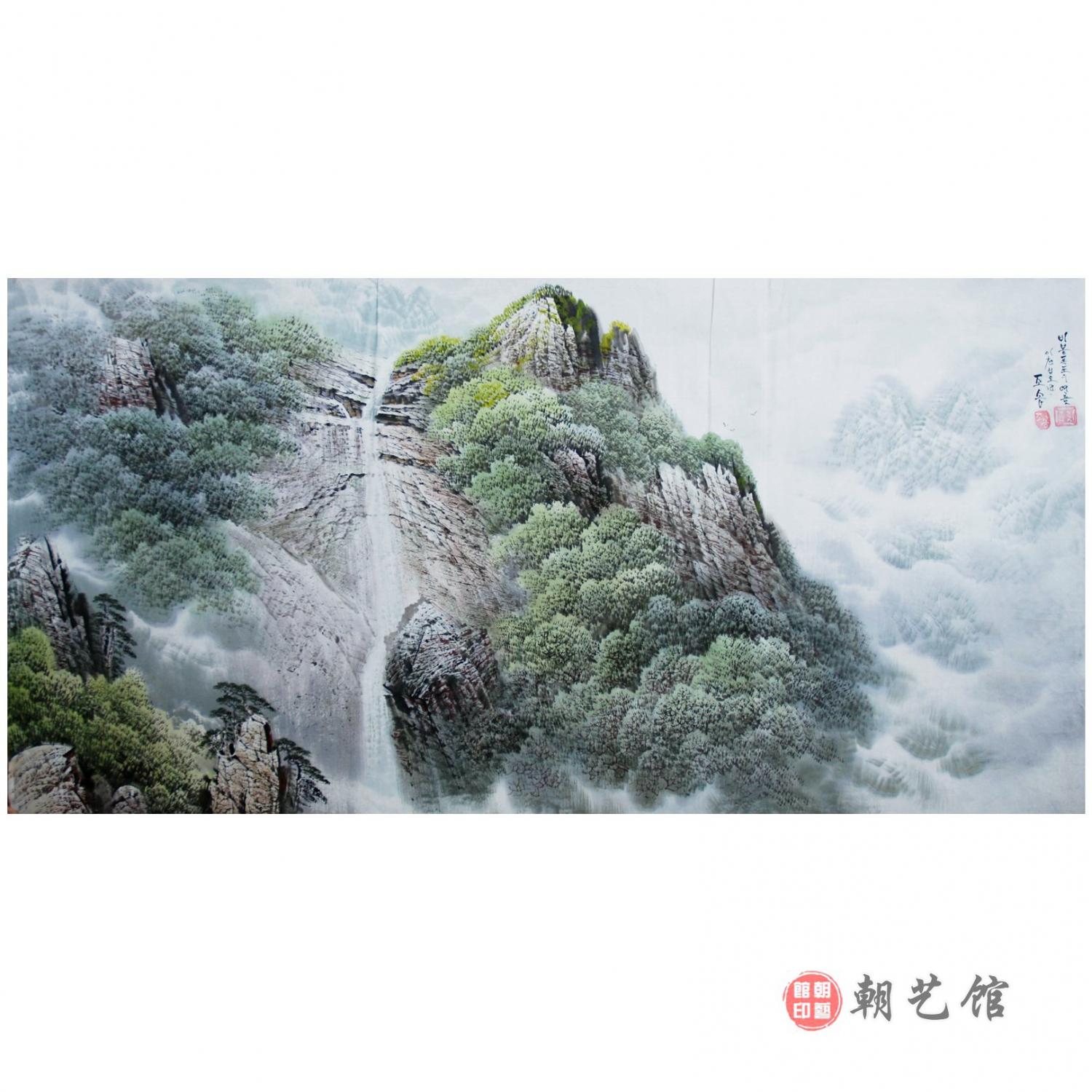 赵松《毗峰瀑布的夏天》朝鲜国画-
