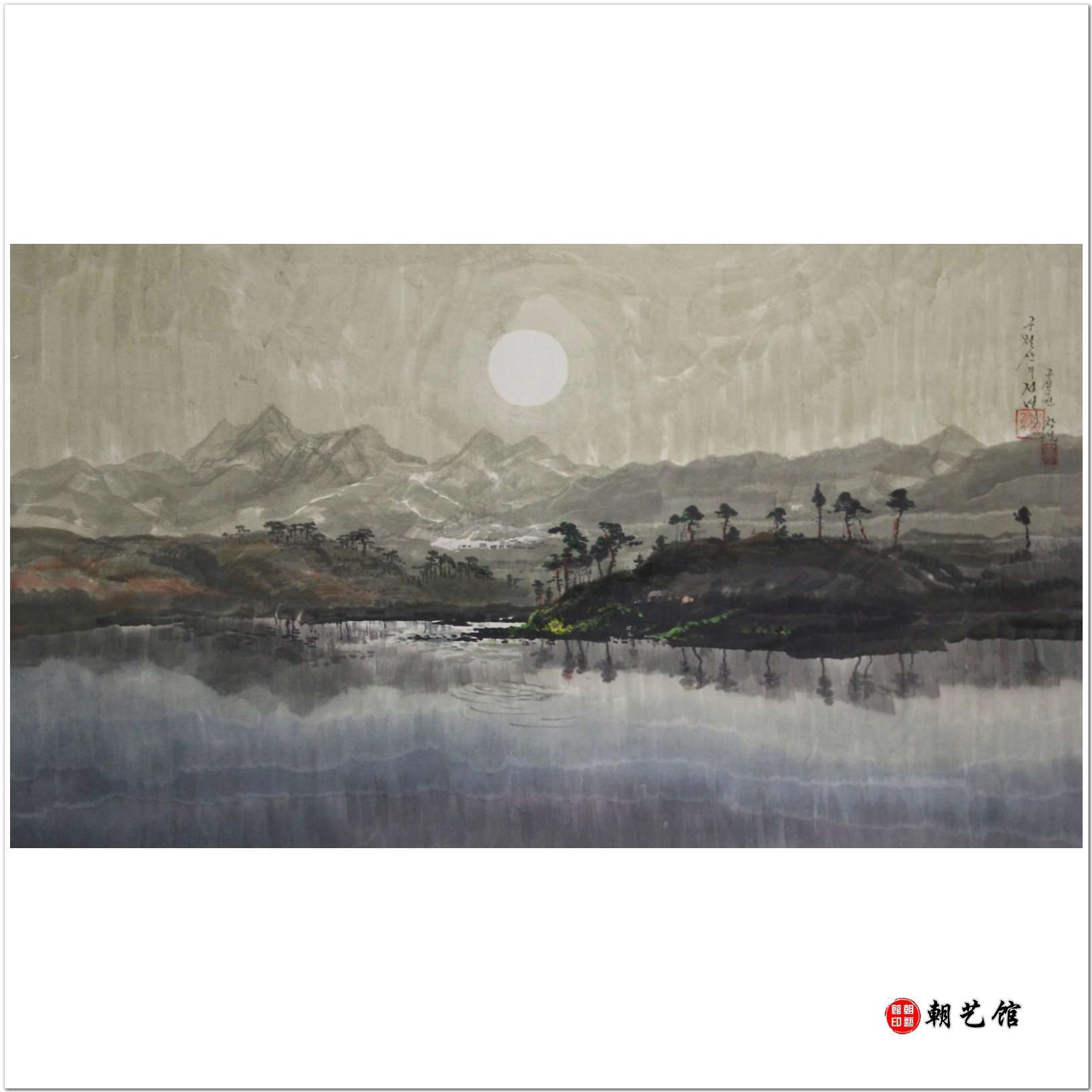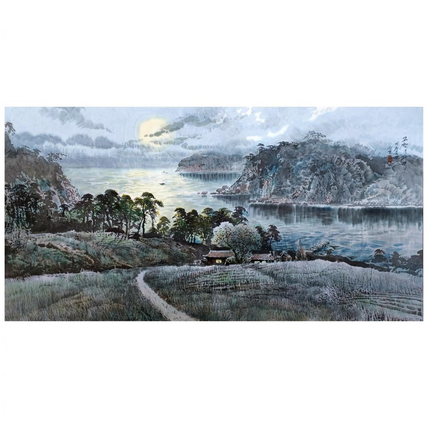 金昌雪《九月山的夜晚》朝鲜国画风景-XG3