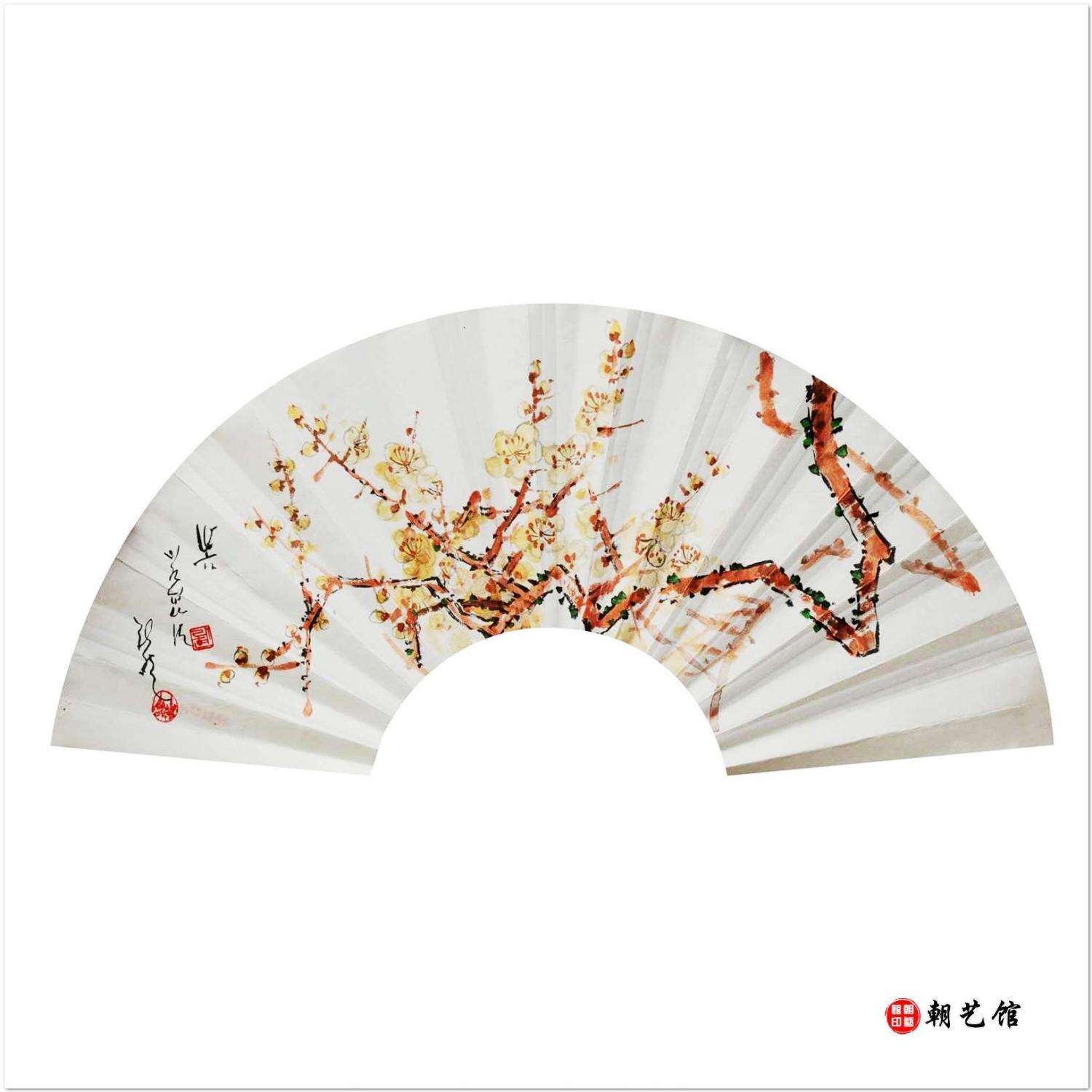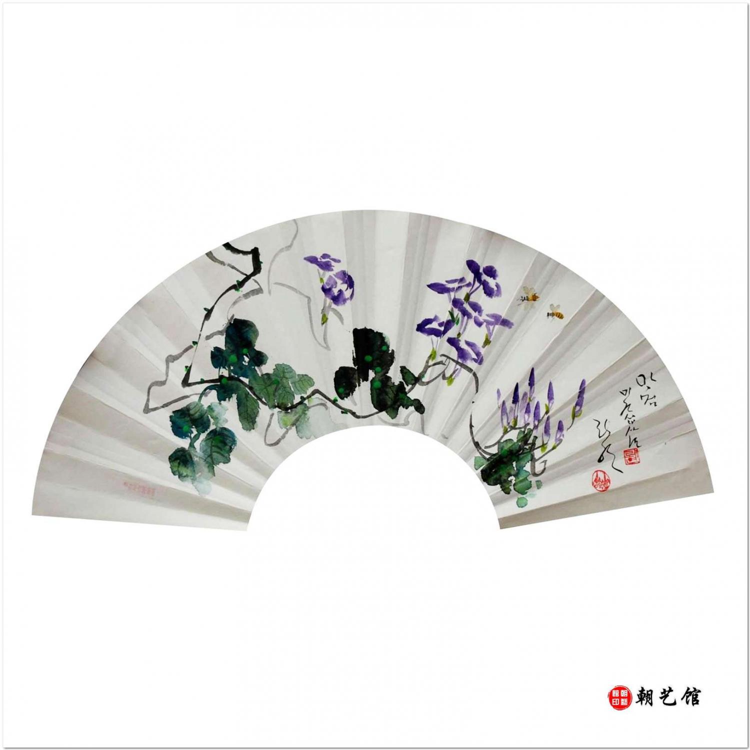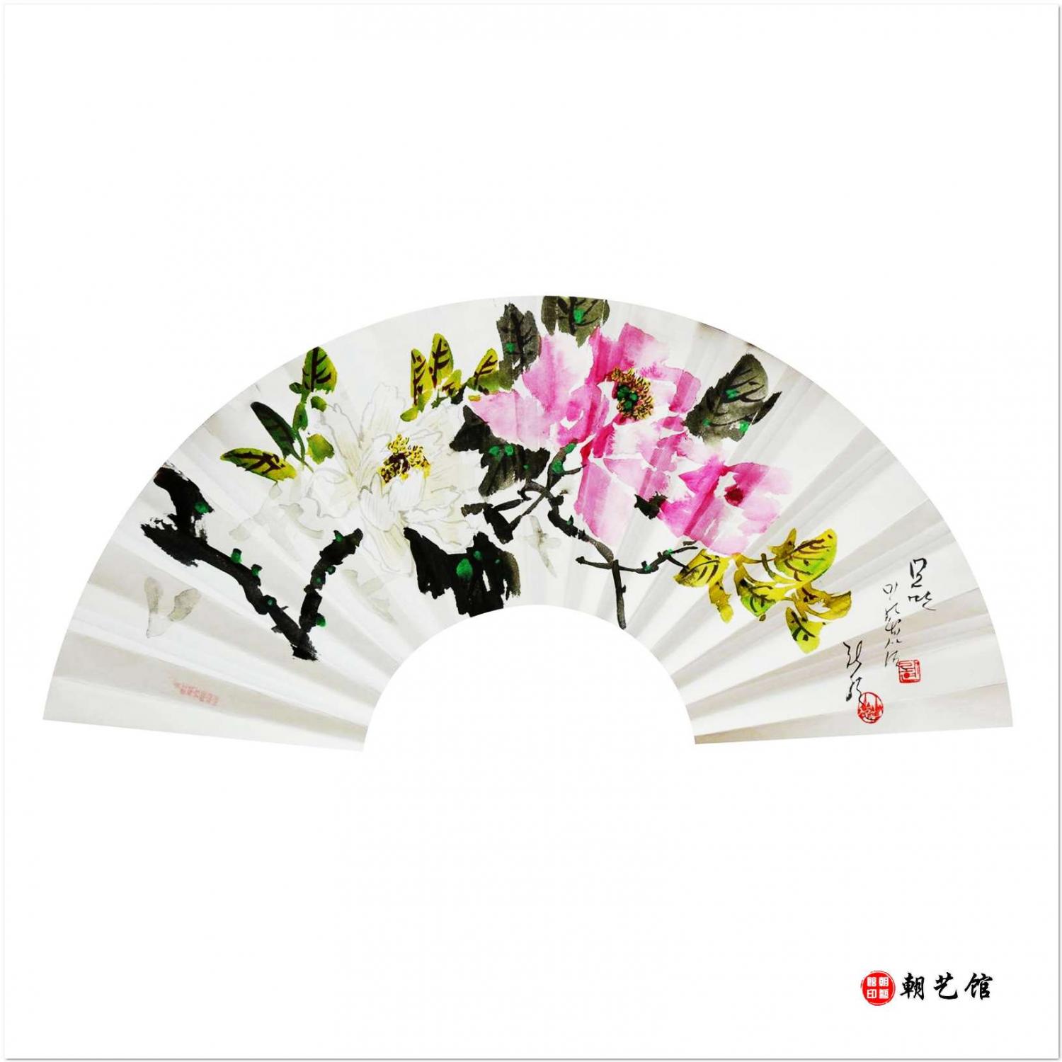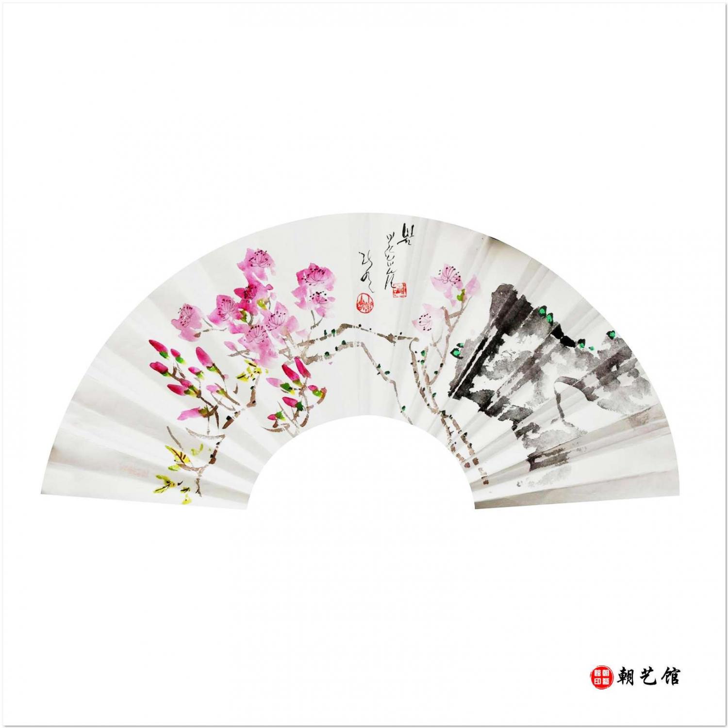 罗玄《金达莱盛开的春》朝鲜国画扇面