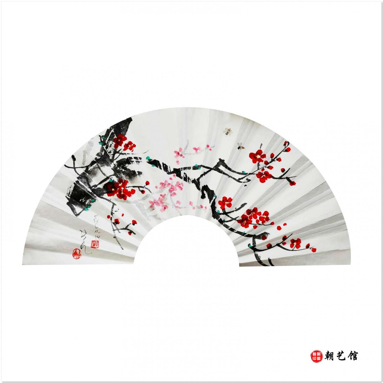 罗玄《鸭绿江的夏季》朝鲜国画扇面
