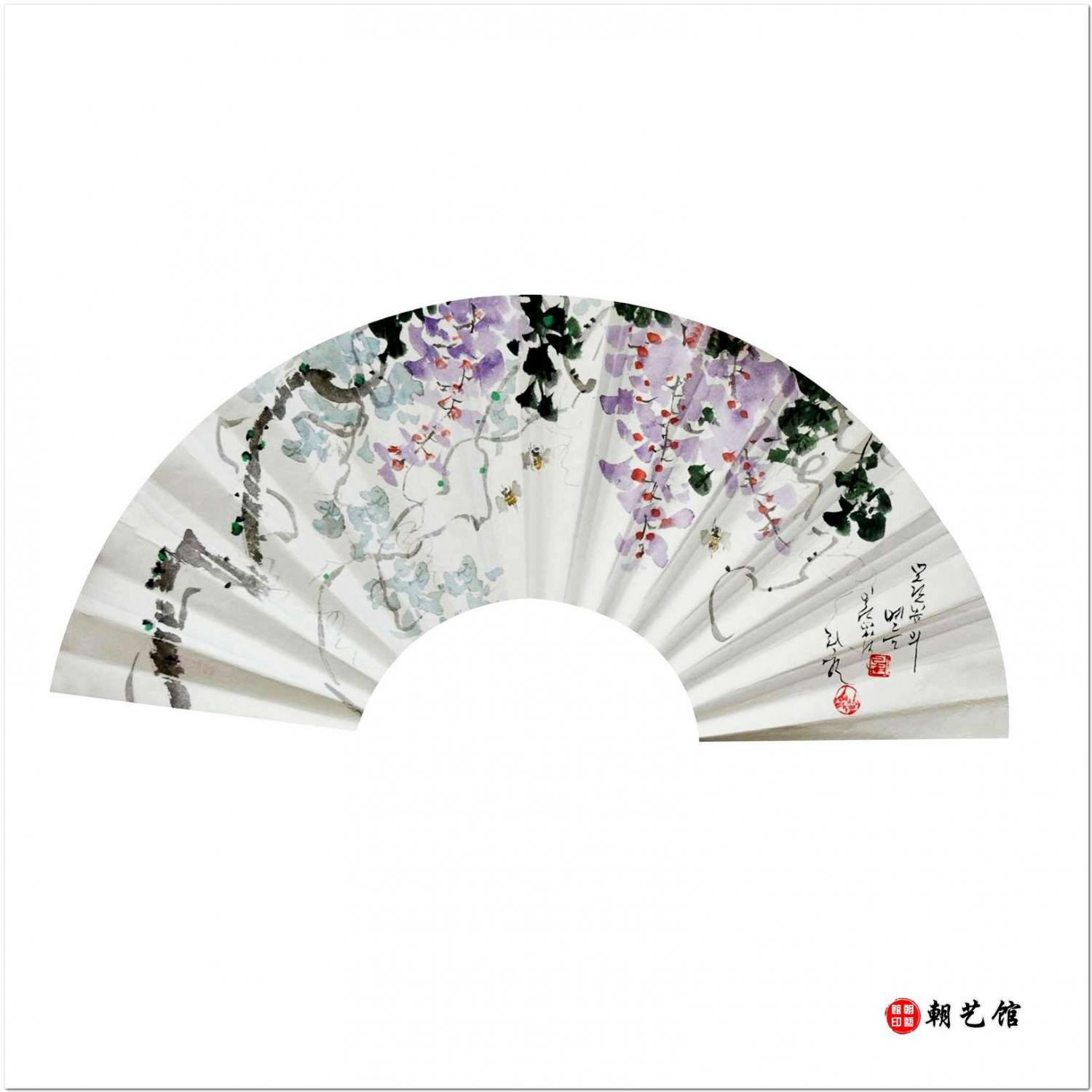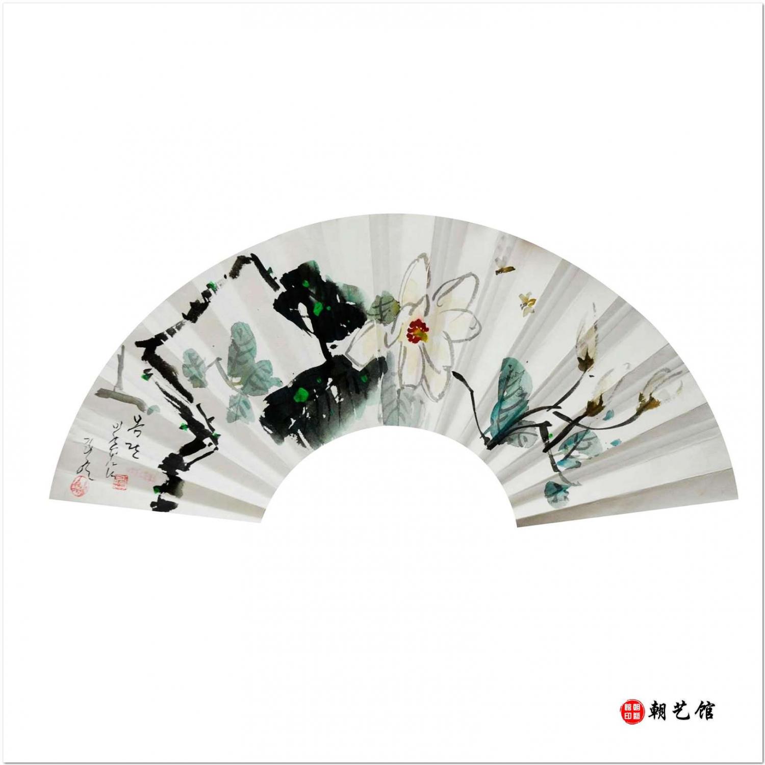 罗玄《牡丹峰的夏》朝鲜国画扇面