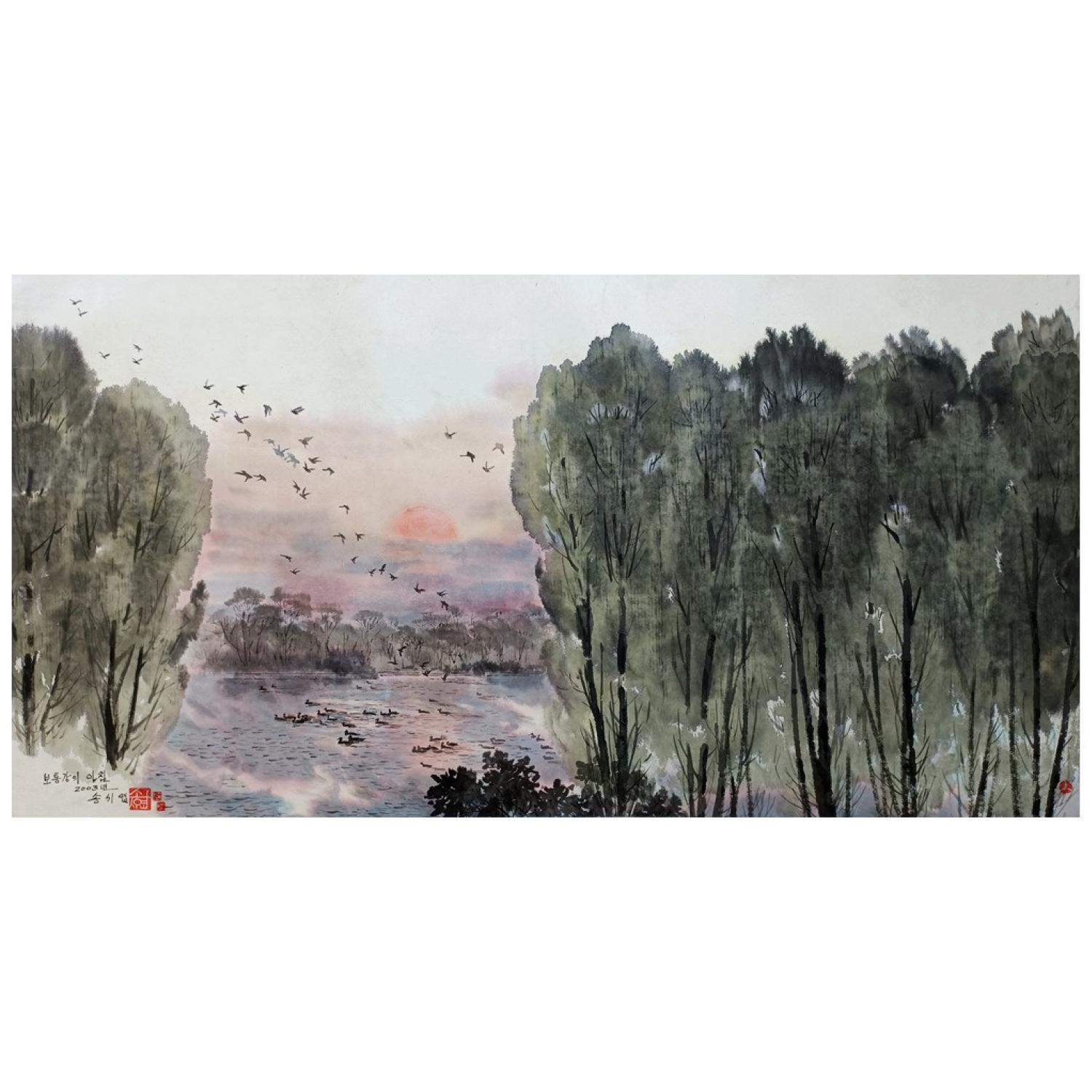宋时叶《松花江边》朝鲜国画