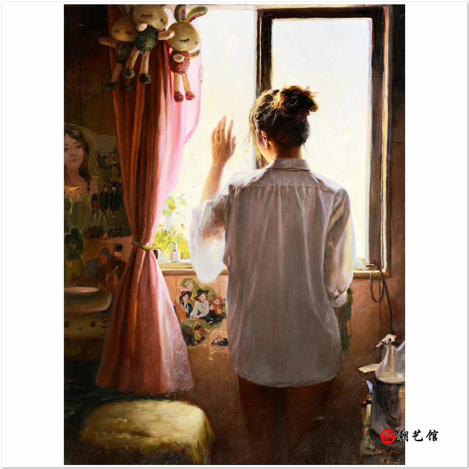 金成哲《阳光》 朝鲜油画人物-xyg