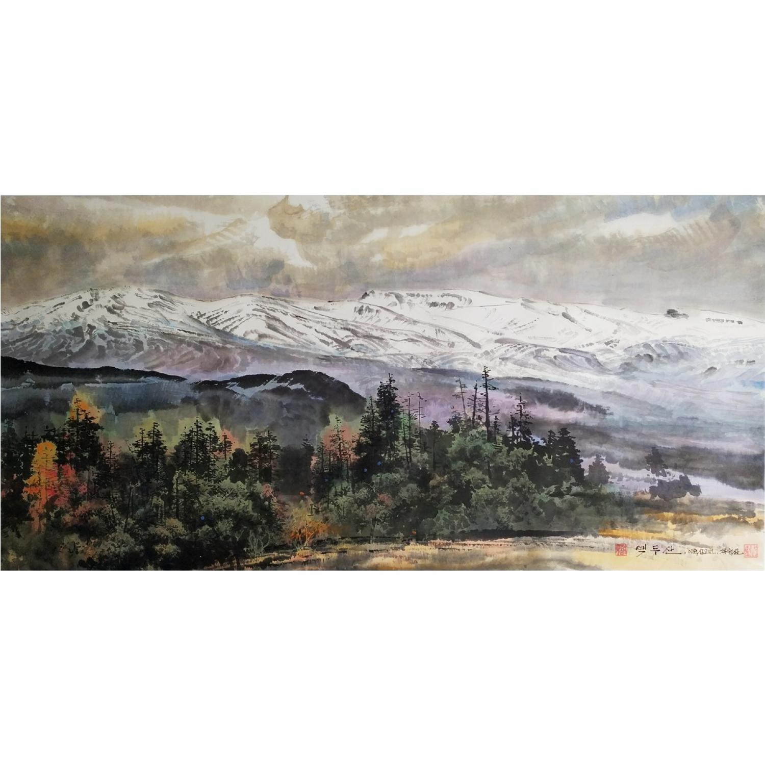 车炯三《白头山》朝鲜国画-1-5报价-jg2-1