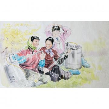 金成玉《黄金山的姑娘们》朝鲜国画--ph