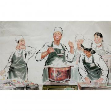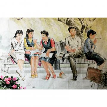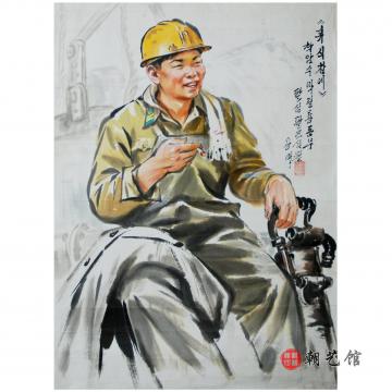 张永壁《朴弼龙同志休息时》朝鲜国画-dang2