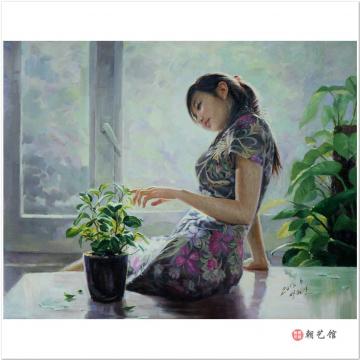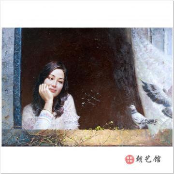 朴贤日《窗前》朝鲜油画--XG3