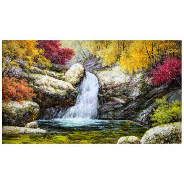 崔镇男《金刚山雨峰瀑布的秋天》朝鲜油画-817sz