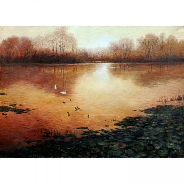 赵俞革《潭水》朝鲜油画风景-WZ挑