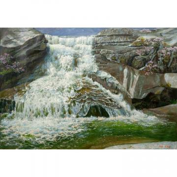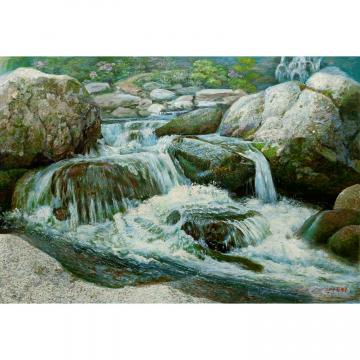 赵俞革《飞瀑》朝鲜油画风景-WZ挑