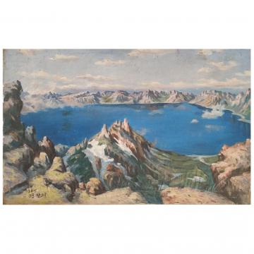 郑宽彻《天池》朝鲜油画-L820