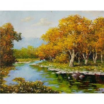朴金哲《小河》朝鲜油画-xyg