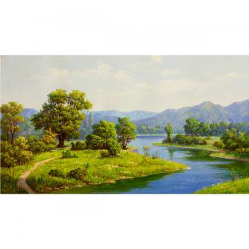 韩浩《河边的夏季》朝鲜油画--xyg
