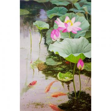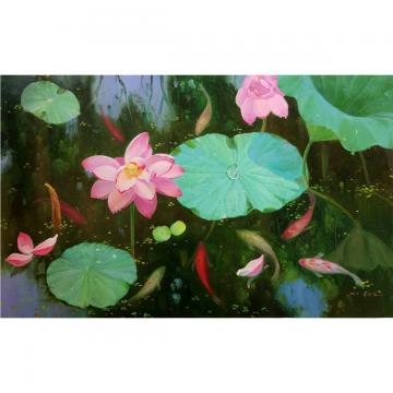 吴相南《荷趣》朝鲜油画-xyg