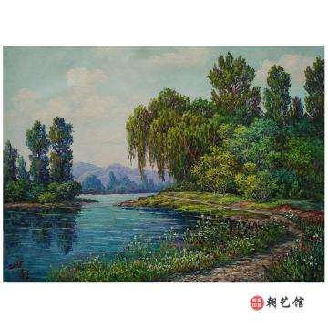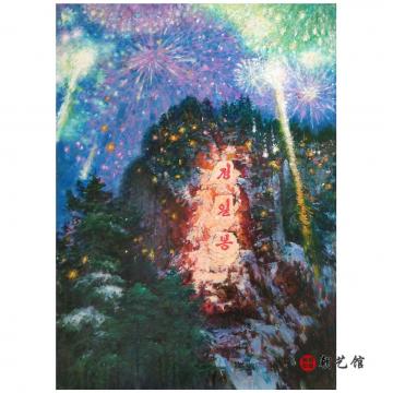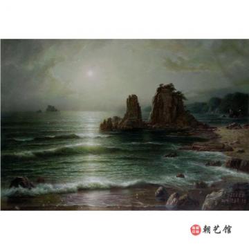 柳河龙《海金刚的月夜》朝鲜油画--XG3