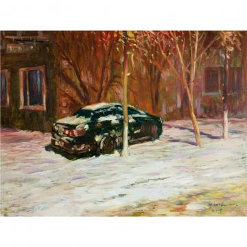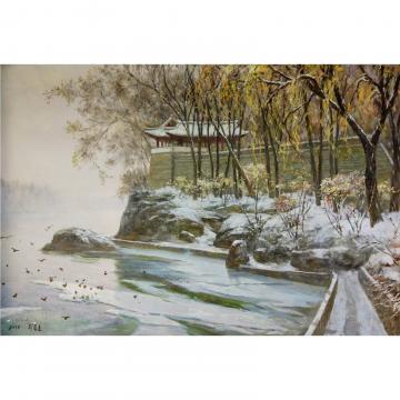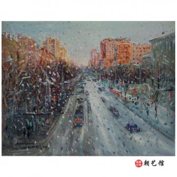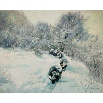 崔胜德《雪后的山上》朝鲜油画-jdzx