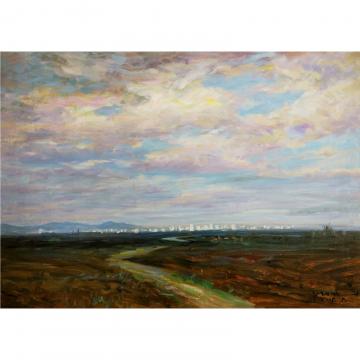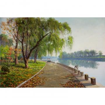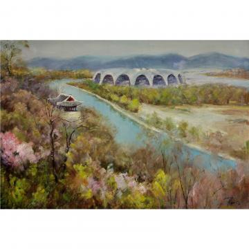 李龙浩《练光亭的夜晚》朝鲜油画--xyg
