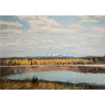崔正旭《白头山天池》朝鲜油画--XG3-jg2-1