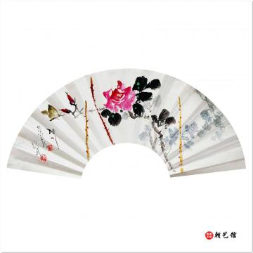 罗玄《玫瑰花》朝鲜国画扇面