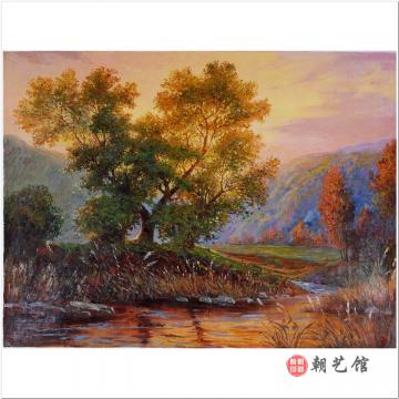 李正《长寿山脚下》朝鲜油画风景-xyg