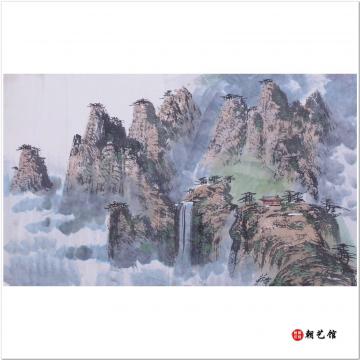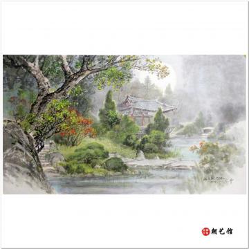 方成姬与文华春合作《外七宝的春雨后》朝鲜国画风景-xgf-jg2-1