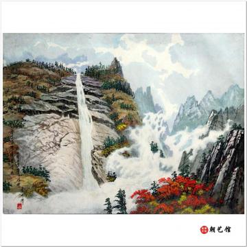 尹起泽《金刚山的飞凤瀑布》朝鲜国画风景-xgf-jg2-1