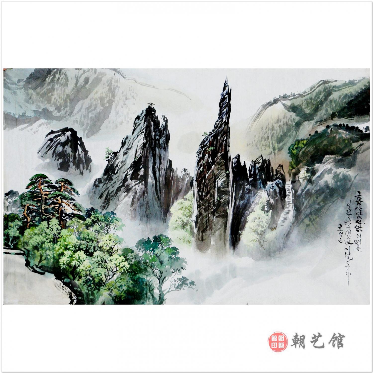 鲁成根《金刚山三仙岩的夏》朝鲜国画-fbzs