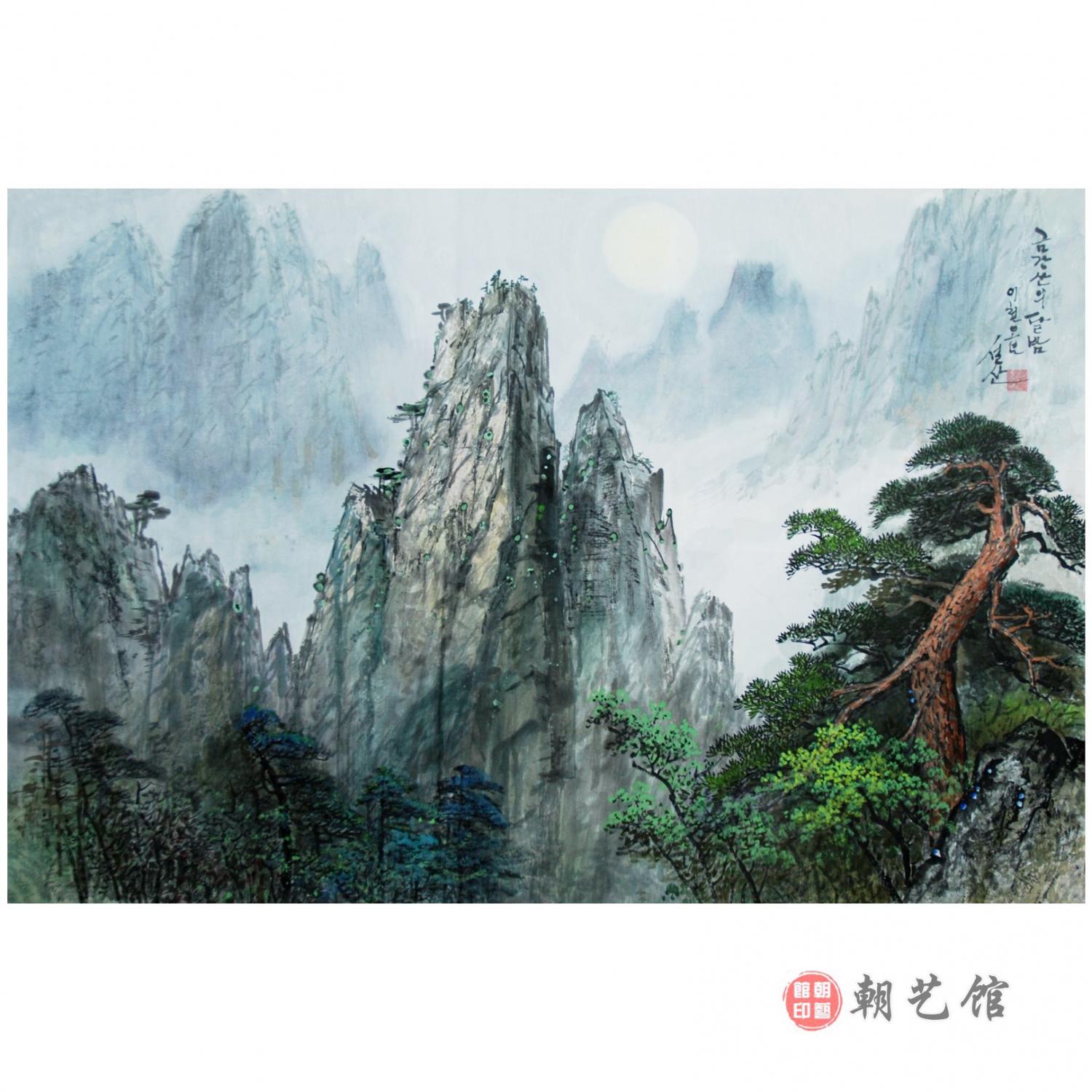 雪山《金刚山月夜》朝鲜国画-djdjdj雪山《金刚山月夜》朝鲜国画的市场价值,他的尺寸69X104,年代是2005