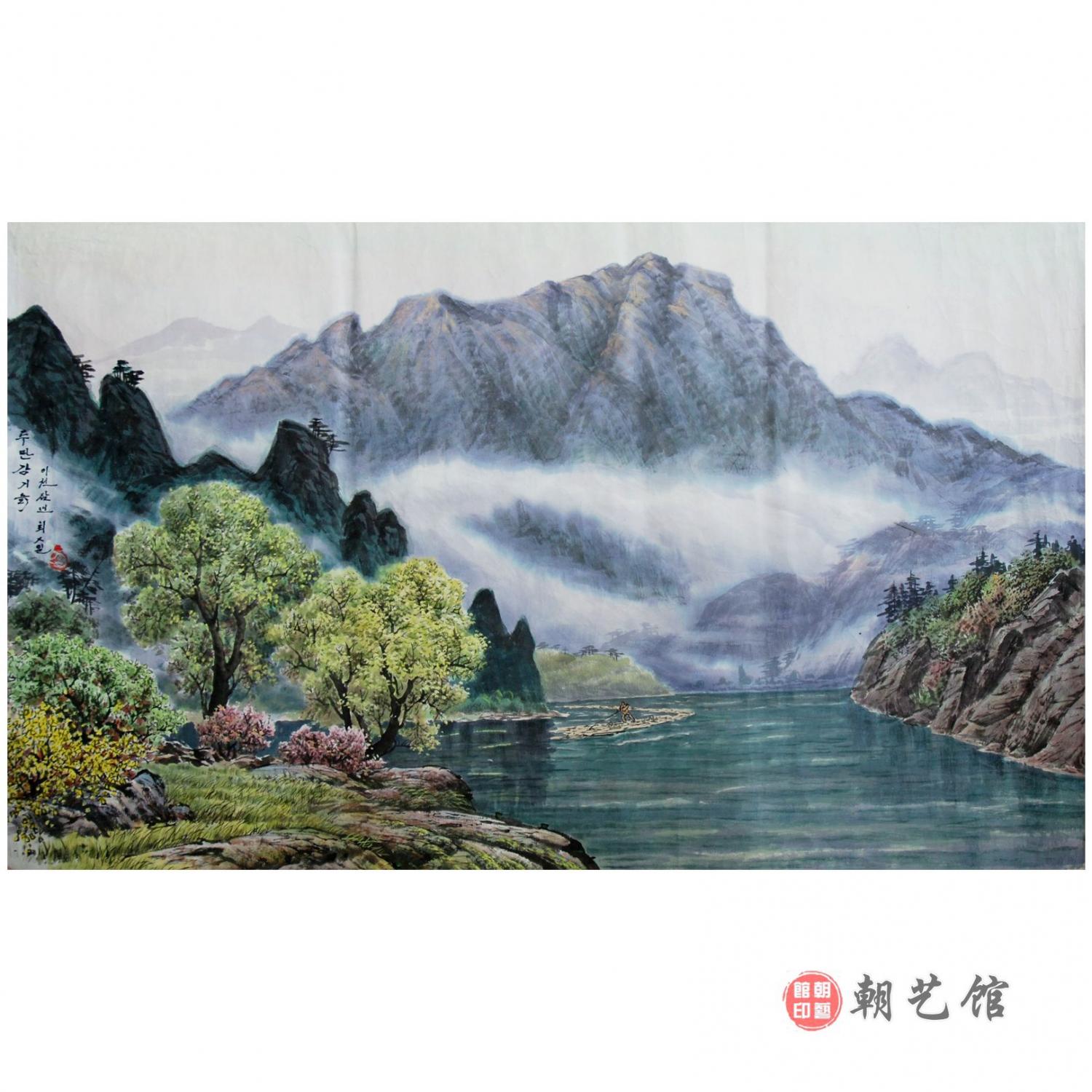 崔日《豆满江》朝鲜国画崔日《豆满江》朝鲜国画的市场价值,他的尺寸72X122,年代是2003