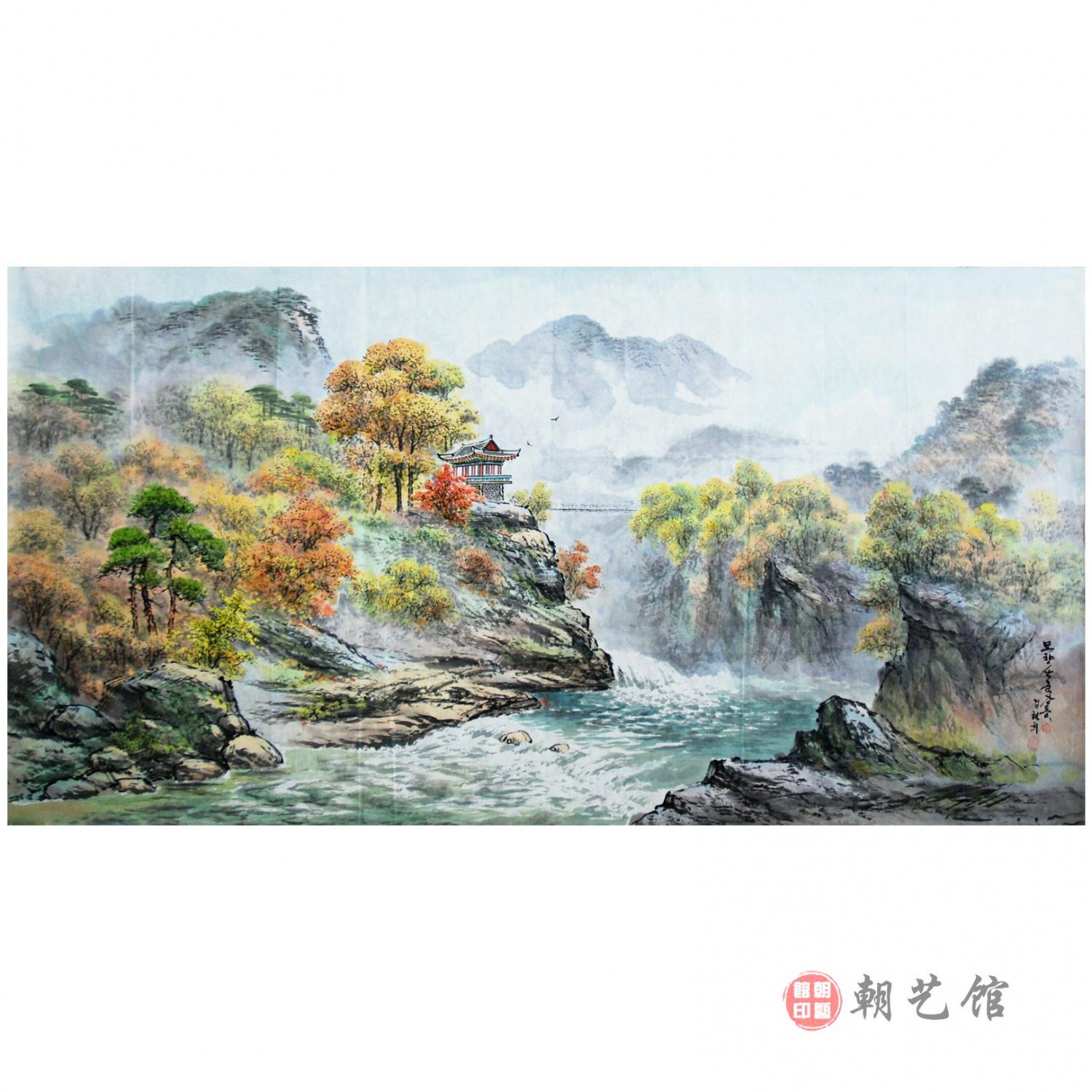 金贤姬《妙香山金刚洞》朝鲜国画-djdjdj金贤姬《妙香山金刚洞》朝鲜国画的市场价值,他的尺寸70X120,年代是2015