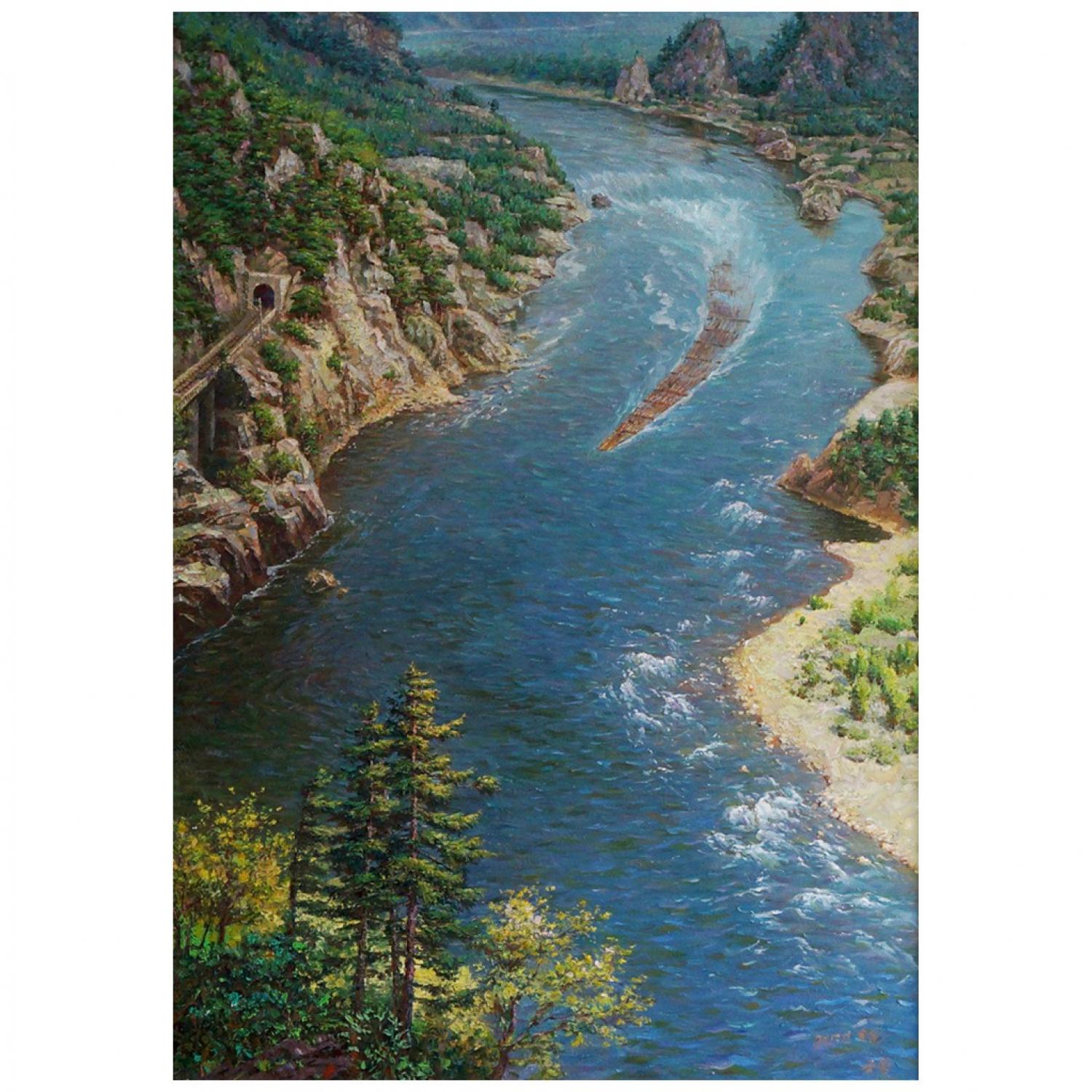 金学《山水之间》朝鲜油画风景金学《山水之间》朝鲜油画风景的市场价值,他的尺寸126X90,年代是2013