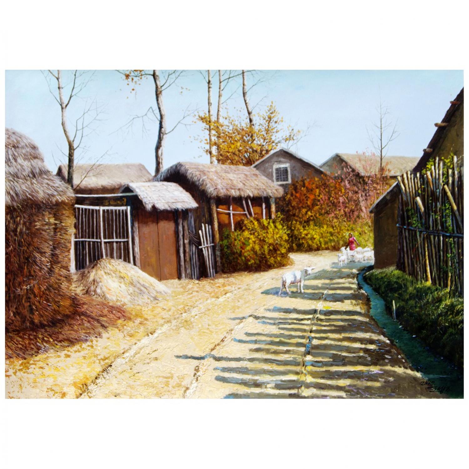 赵成范《牧羊归》朝鲜油画风景-628xj赵成范牧羊归2017年73x100cm》朝鲜油画风景的市场价值,他的尺寸73X100,年代是2017
